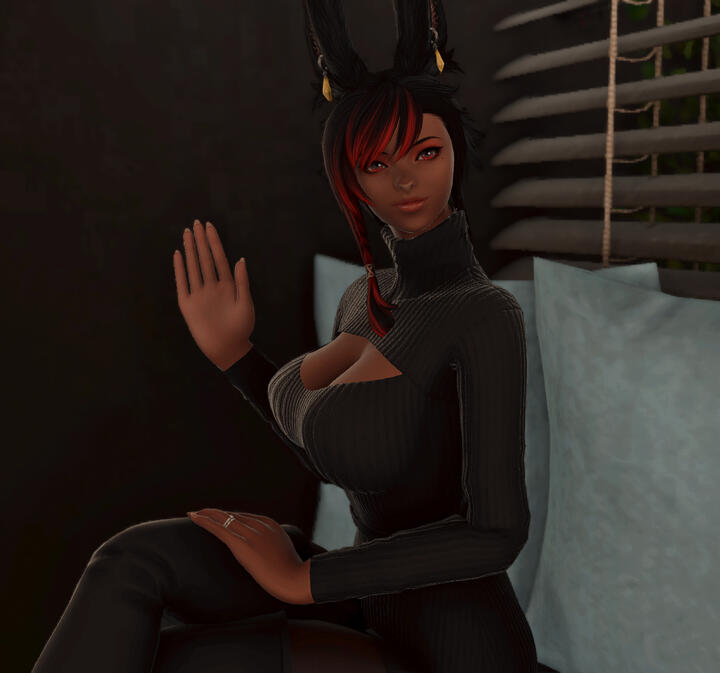 Currently, Cynthia enjoys the finer side of life with her beloved, Kagari. During the day, Cynthia the Shadowbun works as a free lancer, offering services to those who can pay for the survivor community. During the night, she will look for places to relax and have a good time.The survivor community are those who were warped to Ishgard when Cynthia arrived in the past and those who still come out in the present day. She will always try her best to find the survivors of the catastrophe, even if the trail has gone cold. However, she can't shake a feeling knowing something bad might happen one day. Nonetheless, she still stays vigilant in her duties to raise funds for her village and family.